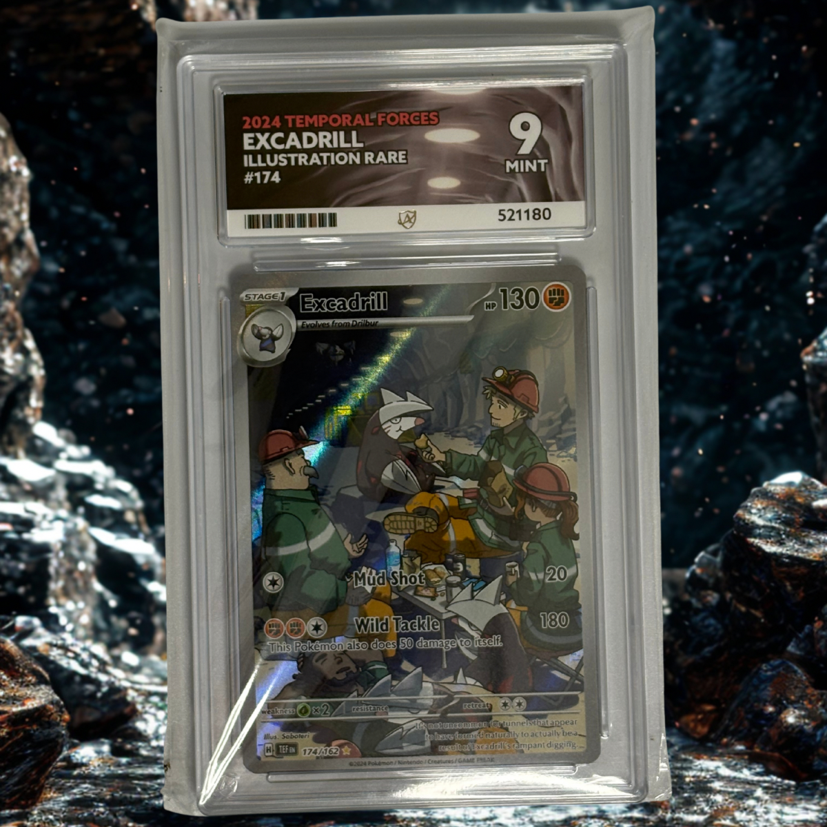 Graded Mint 9 by ACE Grading, this card displays sharp corners, a clean surface, and vibrant holofoil that captures every glint of the underground setting.